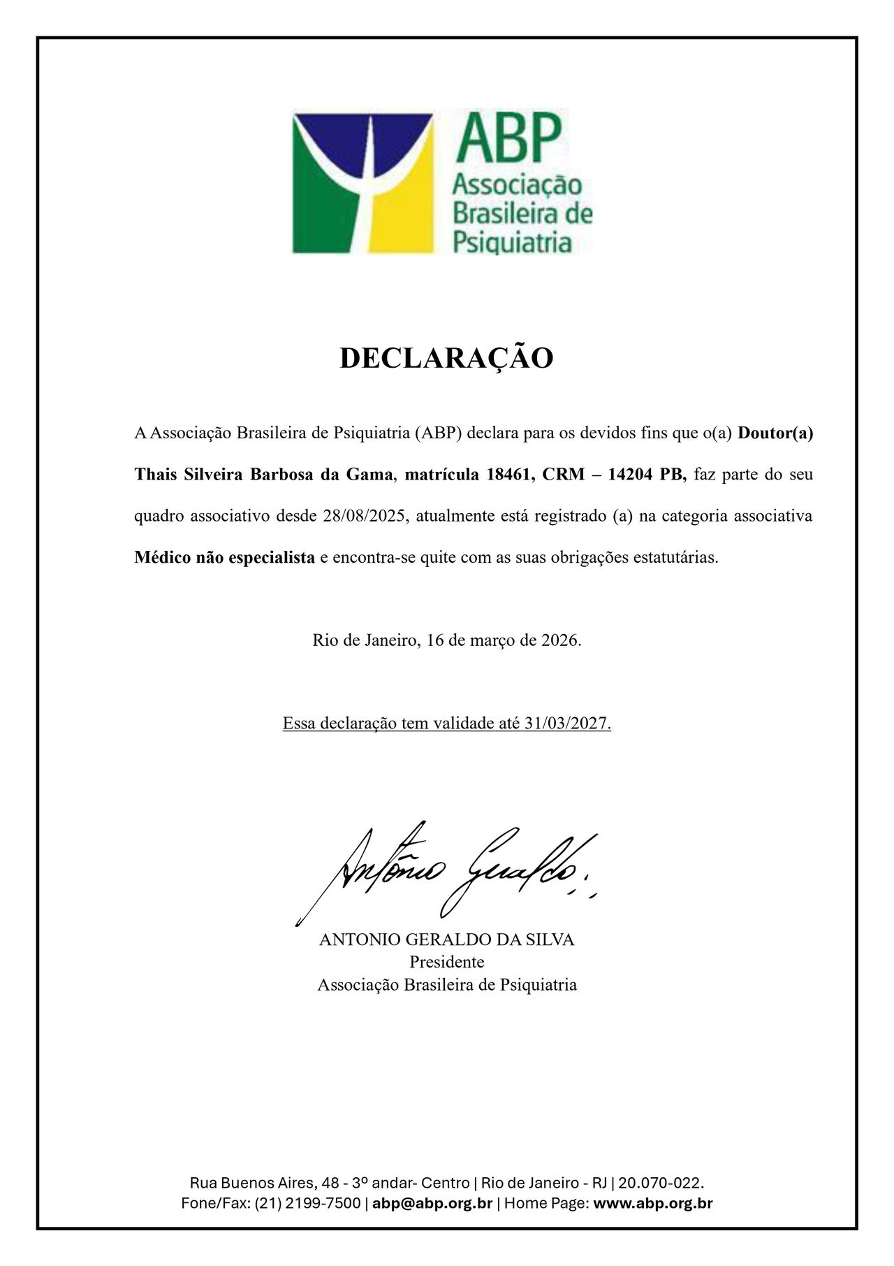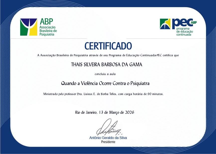 Membro da Associação Brasileira de Psiquiatria (ABP).